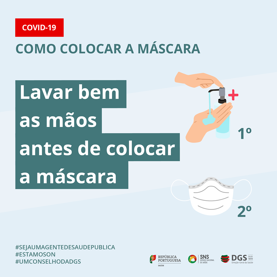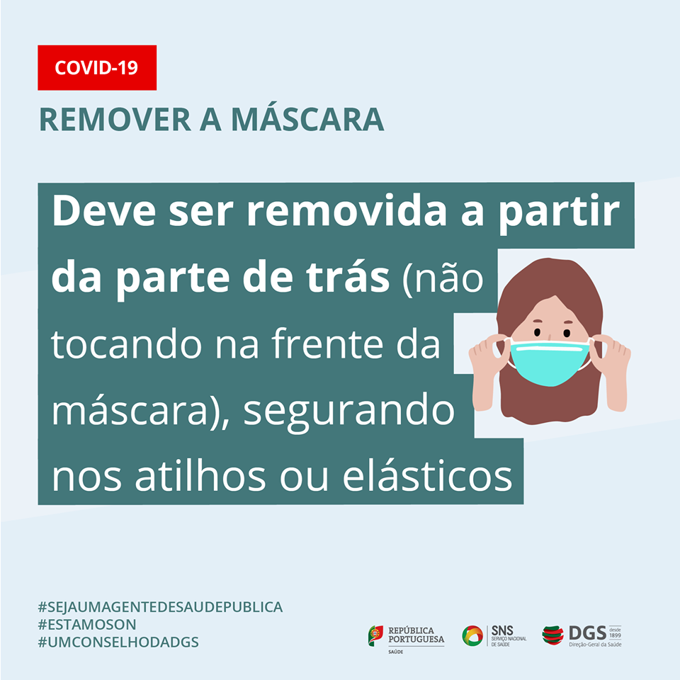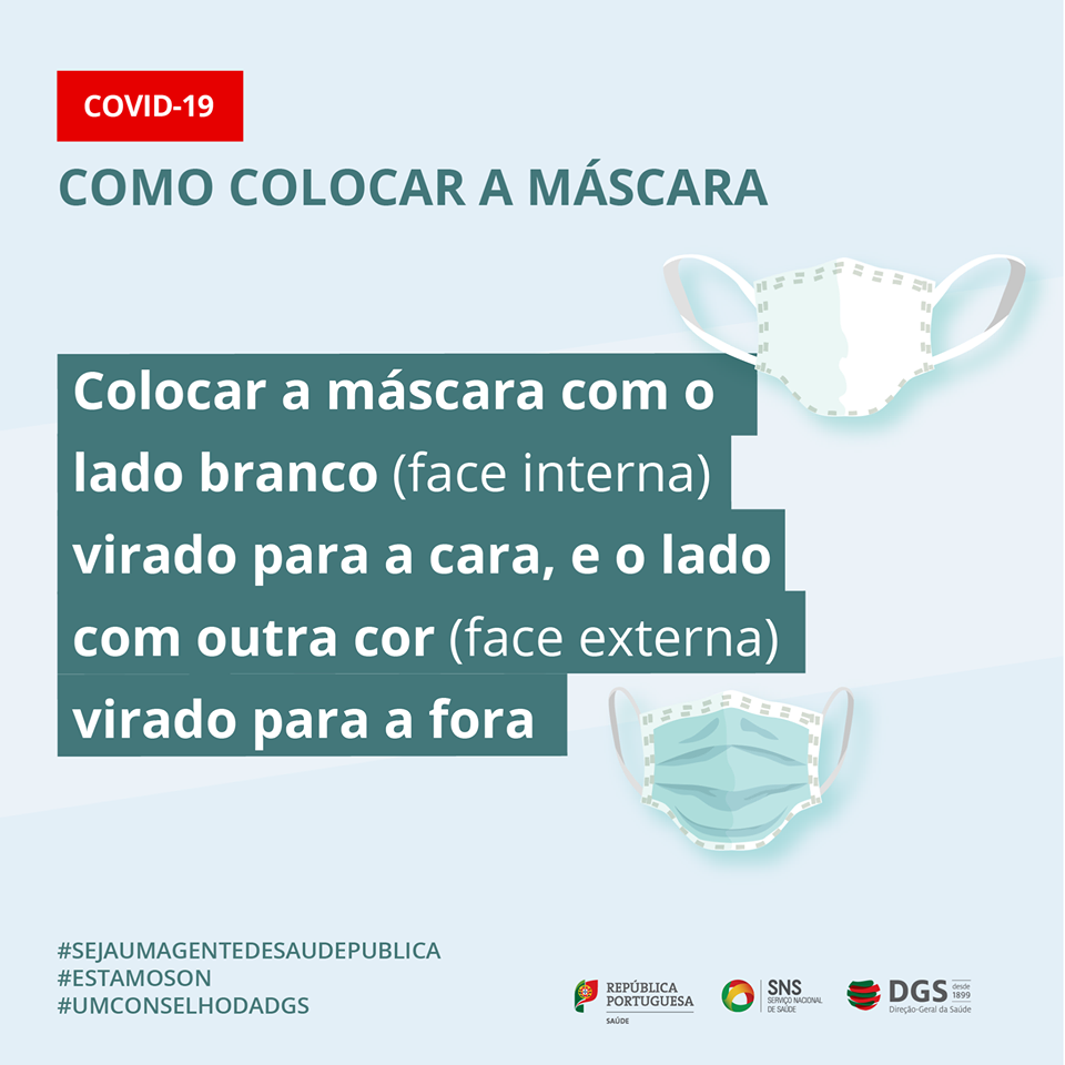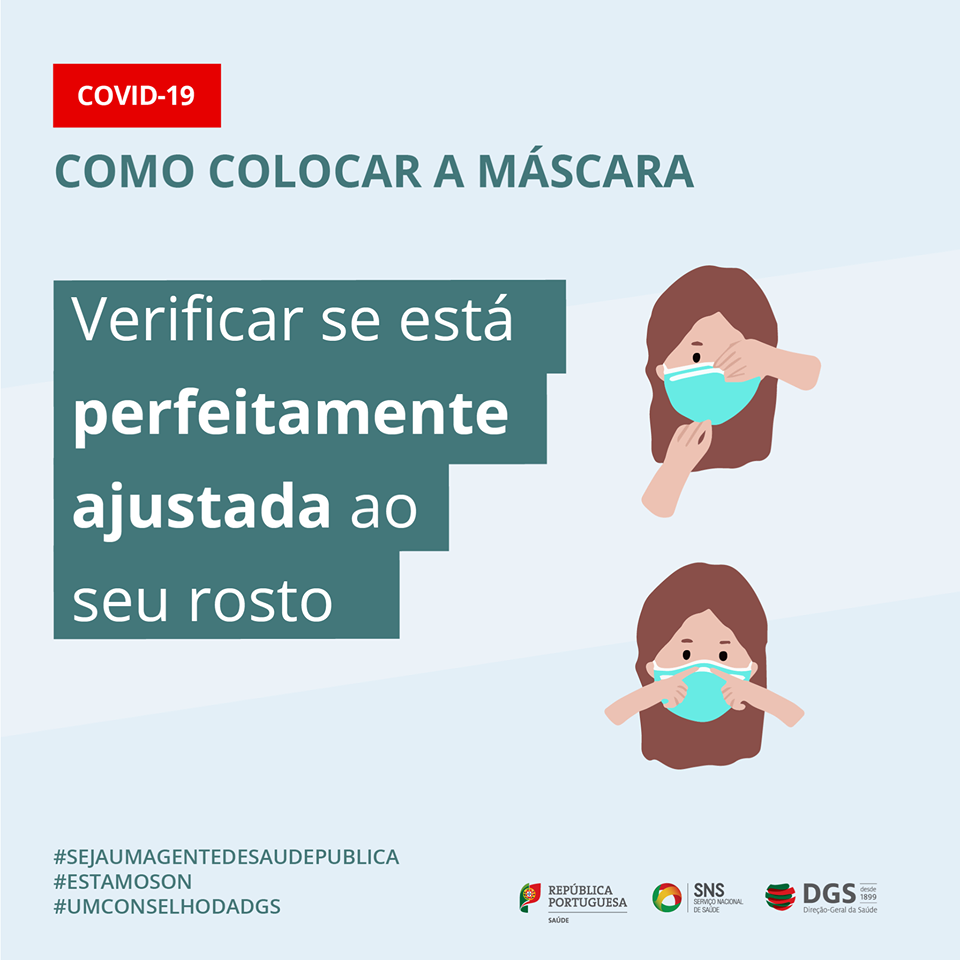 Lembrem-se que a utilização de máscaras só tem efeitos positivos se for feita de forma adequada e se for associada a todas as outras medidas de protecção (distanciamento social, higiene, etc.).