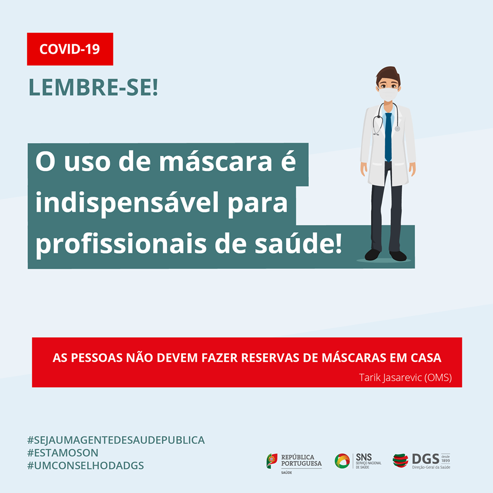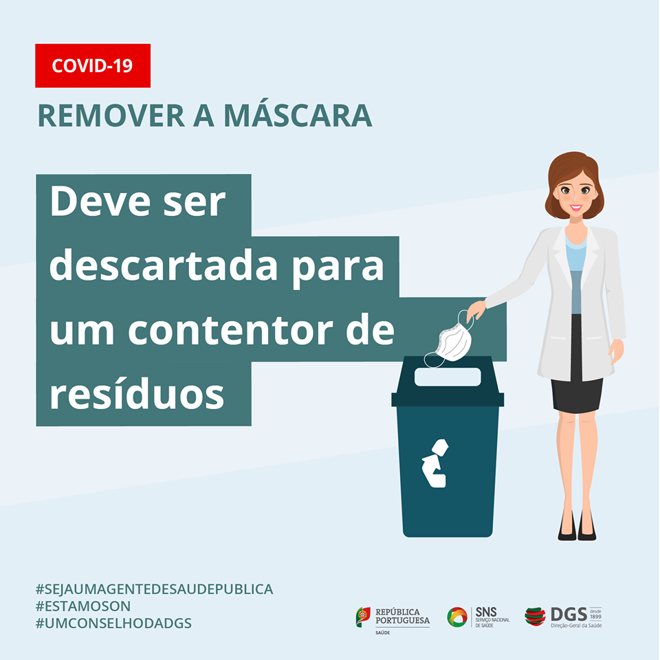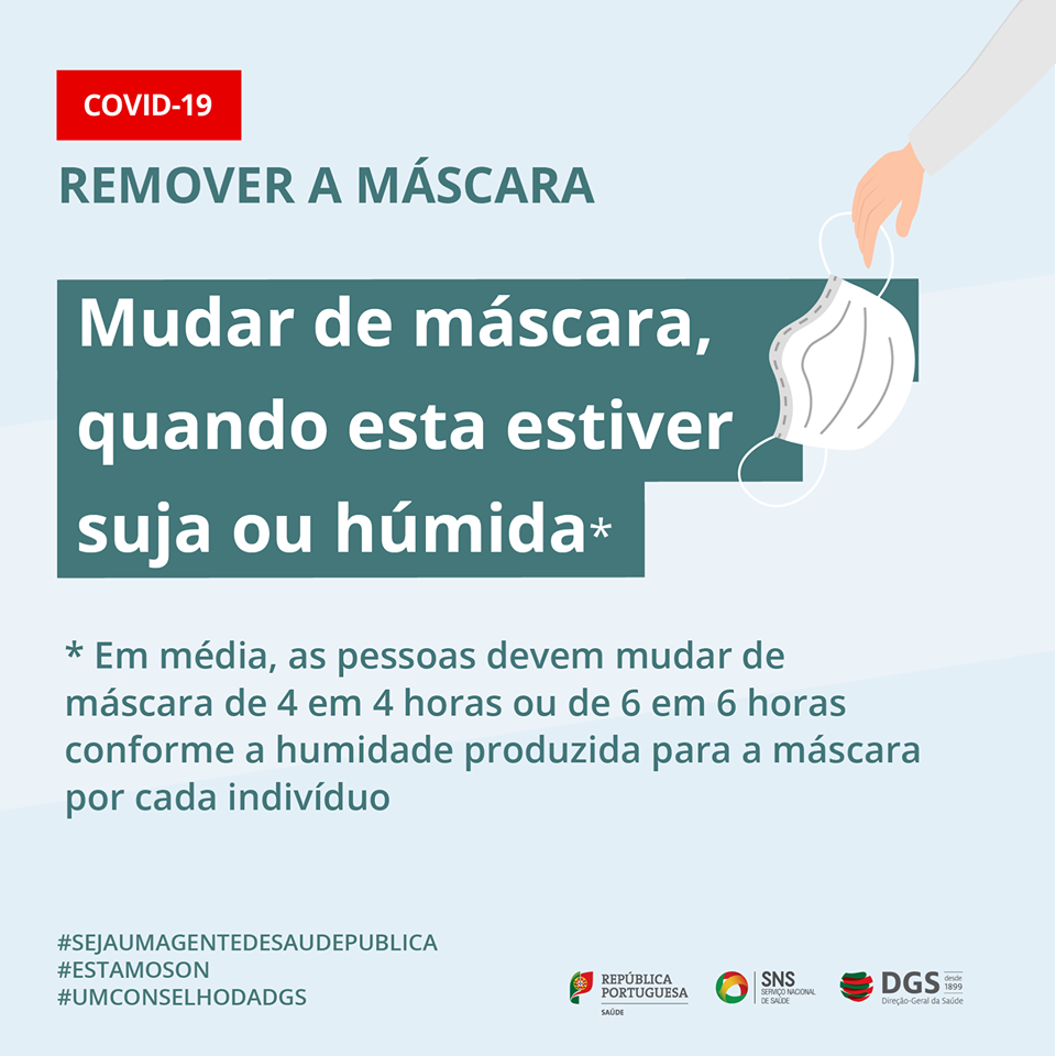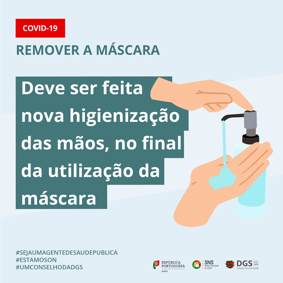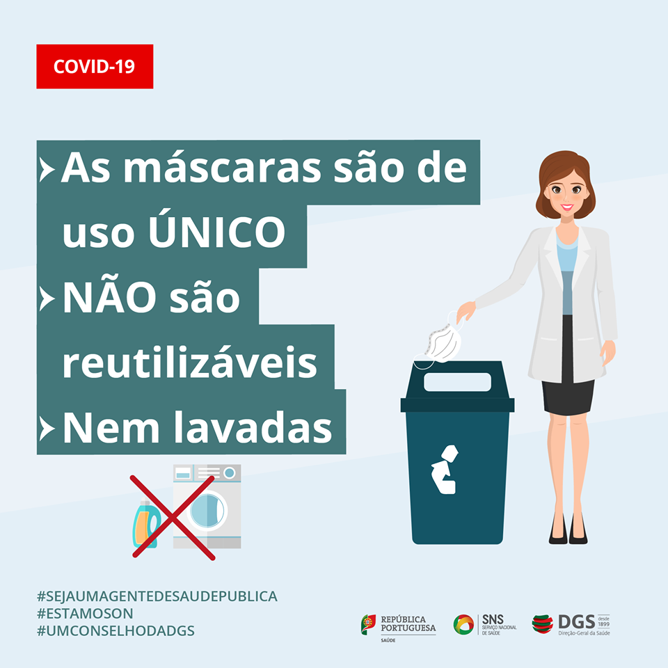 Lembrem-se que a utilização de máscaras só tem efeitos positivos se for feita de forma adequada e se for associada a todas as outras medidas de protecção (distanciamento social, higiene, etc.).