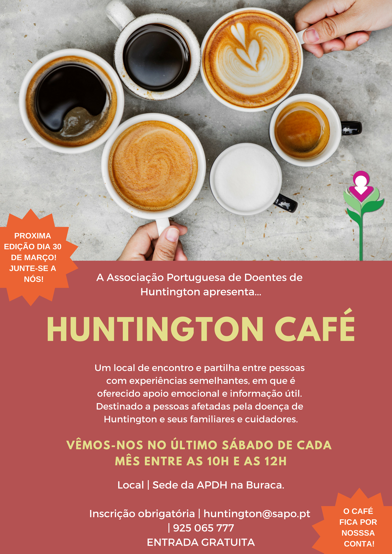 HUNTINGTON CAFÉ – 30 MARÇO 2019, 10:00-12:00, sede da APDH – Lisboa
